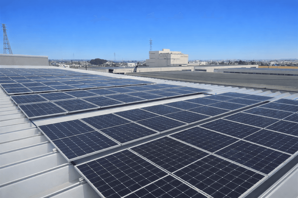 自家消費型の太陽光発電パネルを設置。平日は工場の製造ラインへ直接給電し、CO2排出を抑制した生産体制を構築。休日の余剰電力は地域の商業施設へ供給しています。