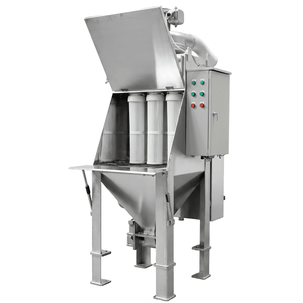 集塵機を内蔵しているので、回収の原料ロスをなくします。