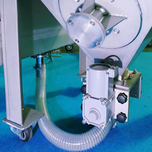 投入された粉体は、吸い込まれながら、ホッパー部に入ります。
