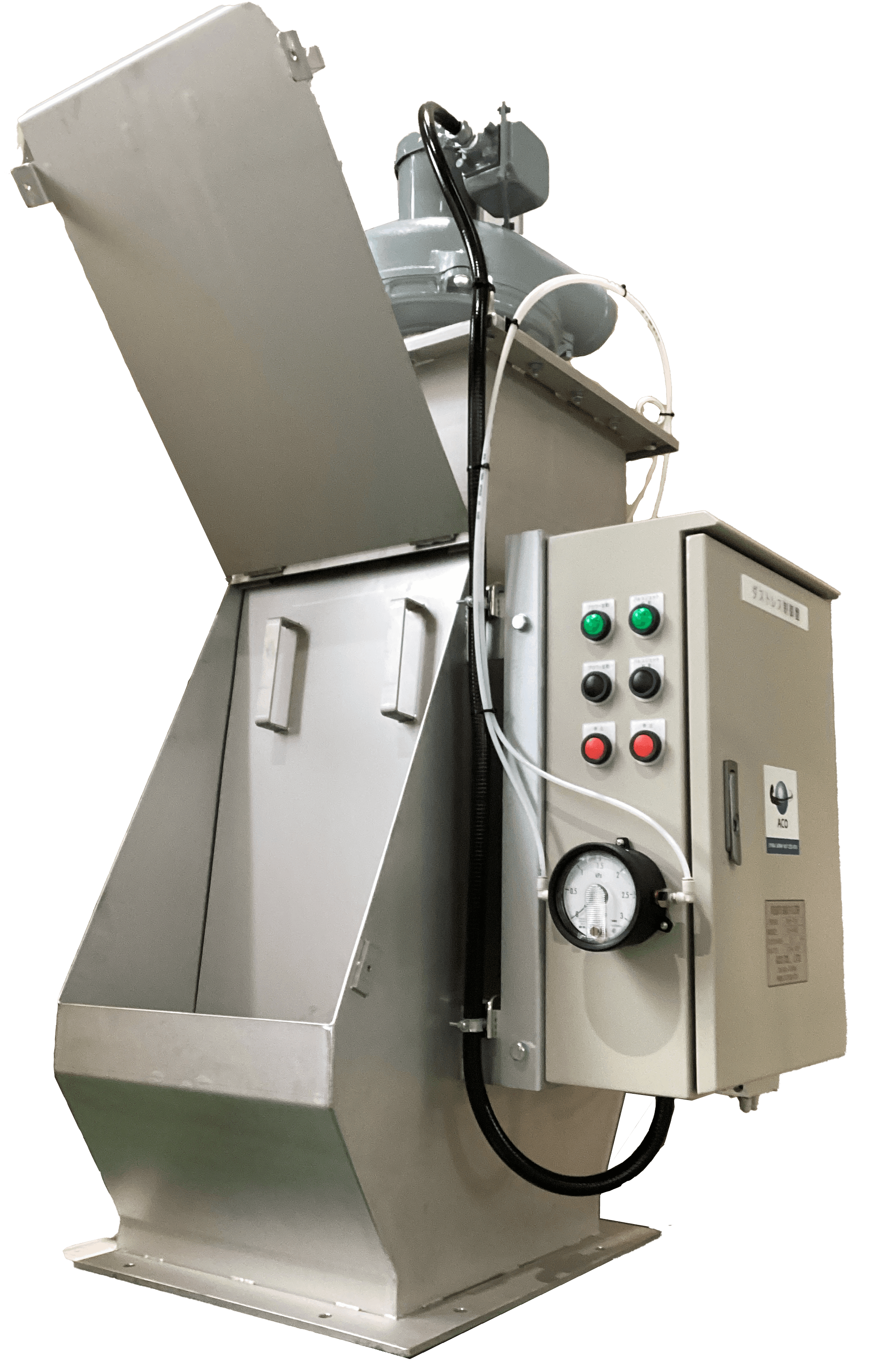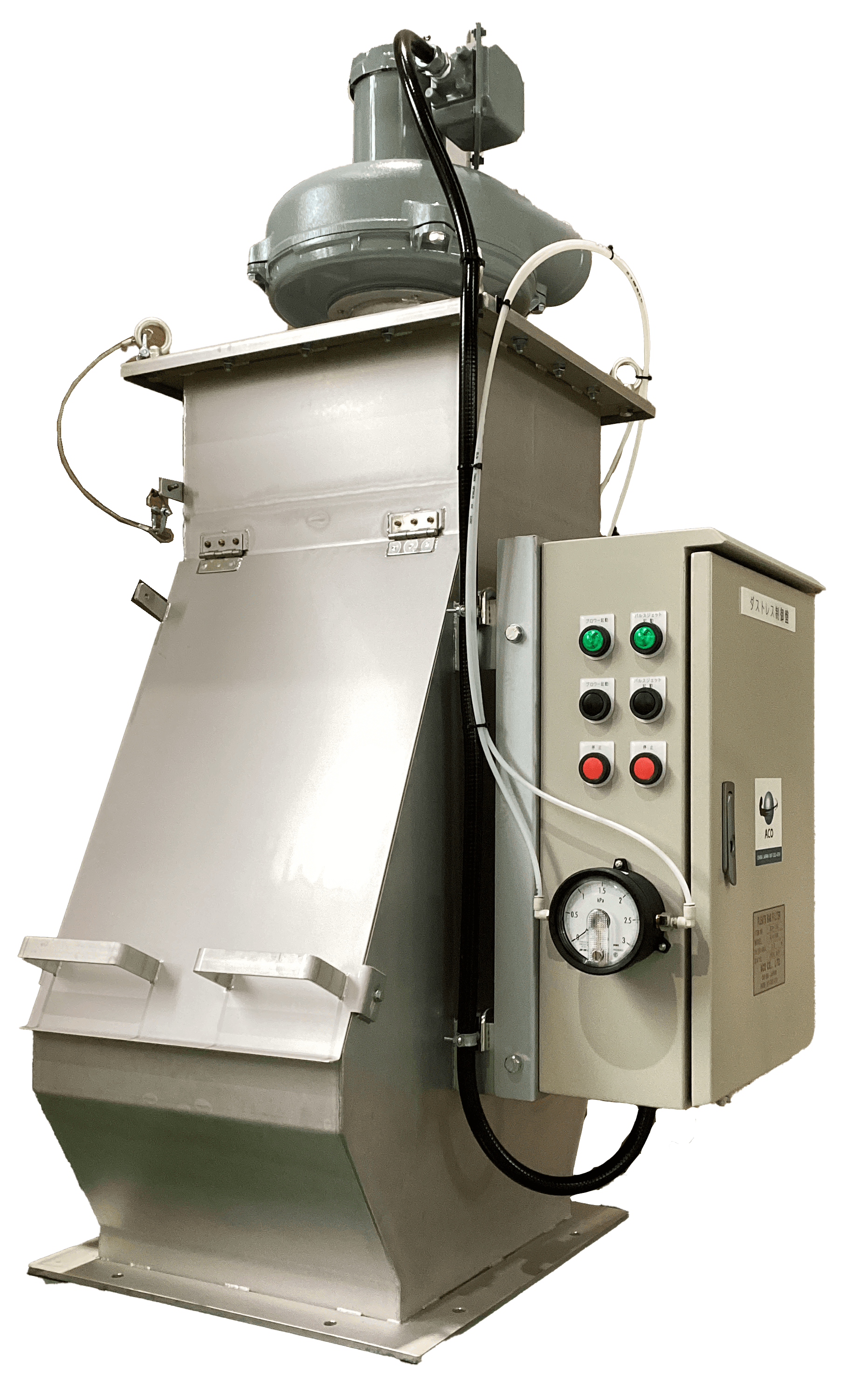 払い落とされた粉体は装置下部のホッパーへ集められます。