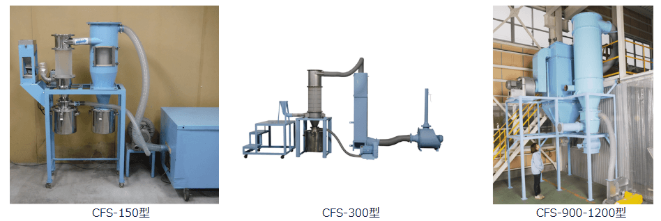 空気の力を利用し、ふるいでは分離できない微粉までも取り除く分離装置です。