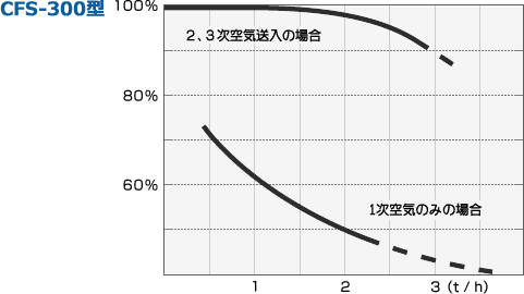 2次空気、3次空気の送入で、ほぼ100%の分離を実現しています。
