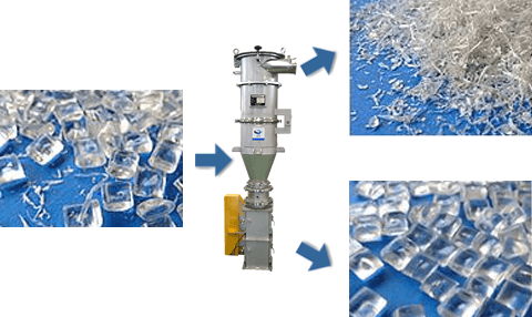 ジェットセパレータ プラスチックペレット・異物分離テスト