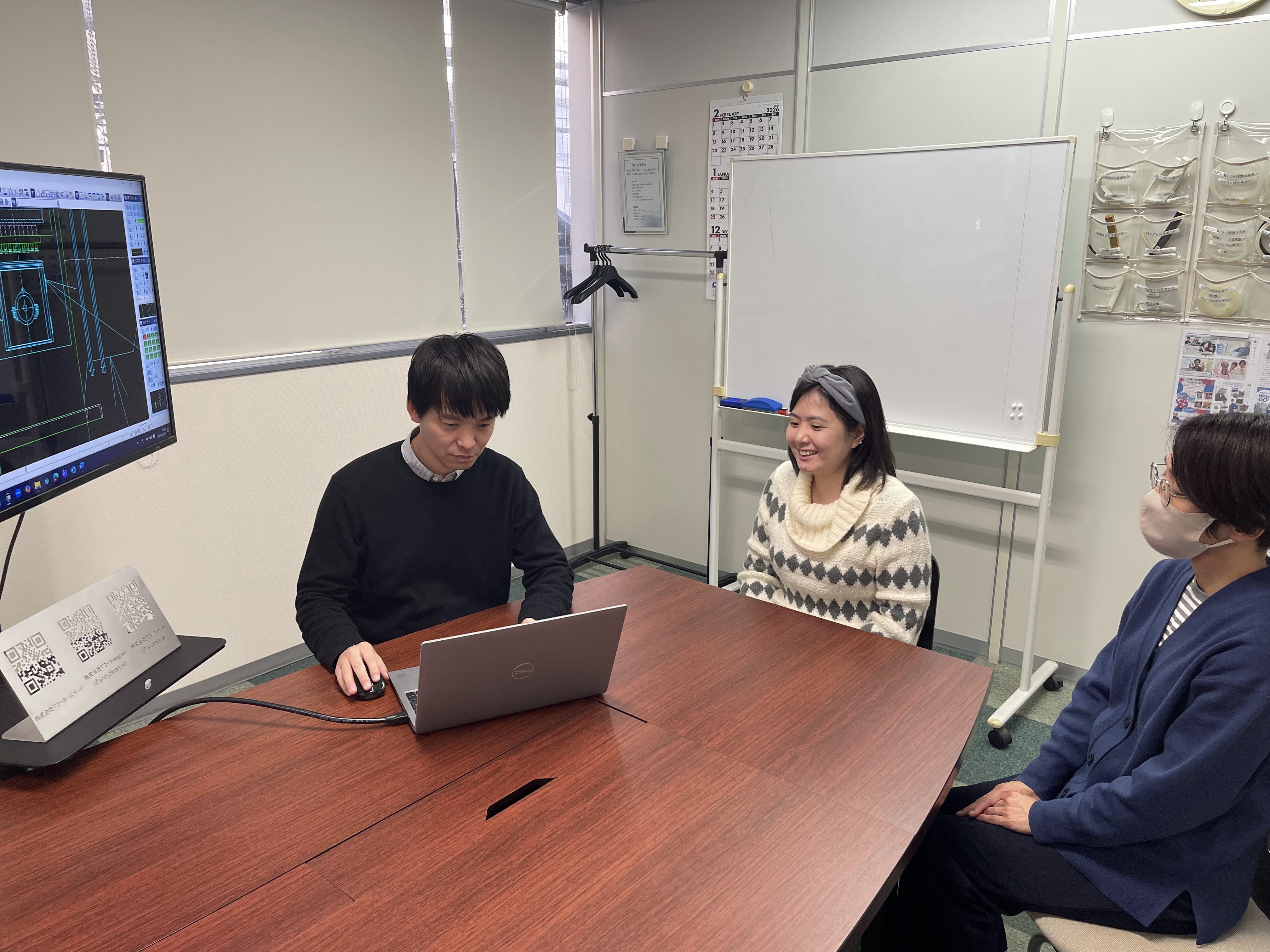 仕事は電話やホームページ等、お客様からの問い合わせから始まります。お客様からの要望を正確に把握し、提案(見積・図面作成)し、成約を目指します。成約後は詳細な設計をし、自社工場に製作依頼をします。依頼通り製作できているか確認・検査を行い、客先に納入、アフターフォローします。